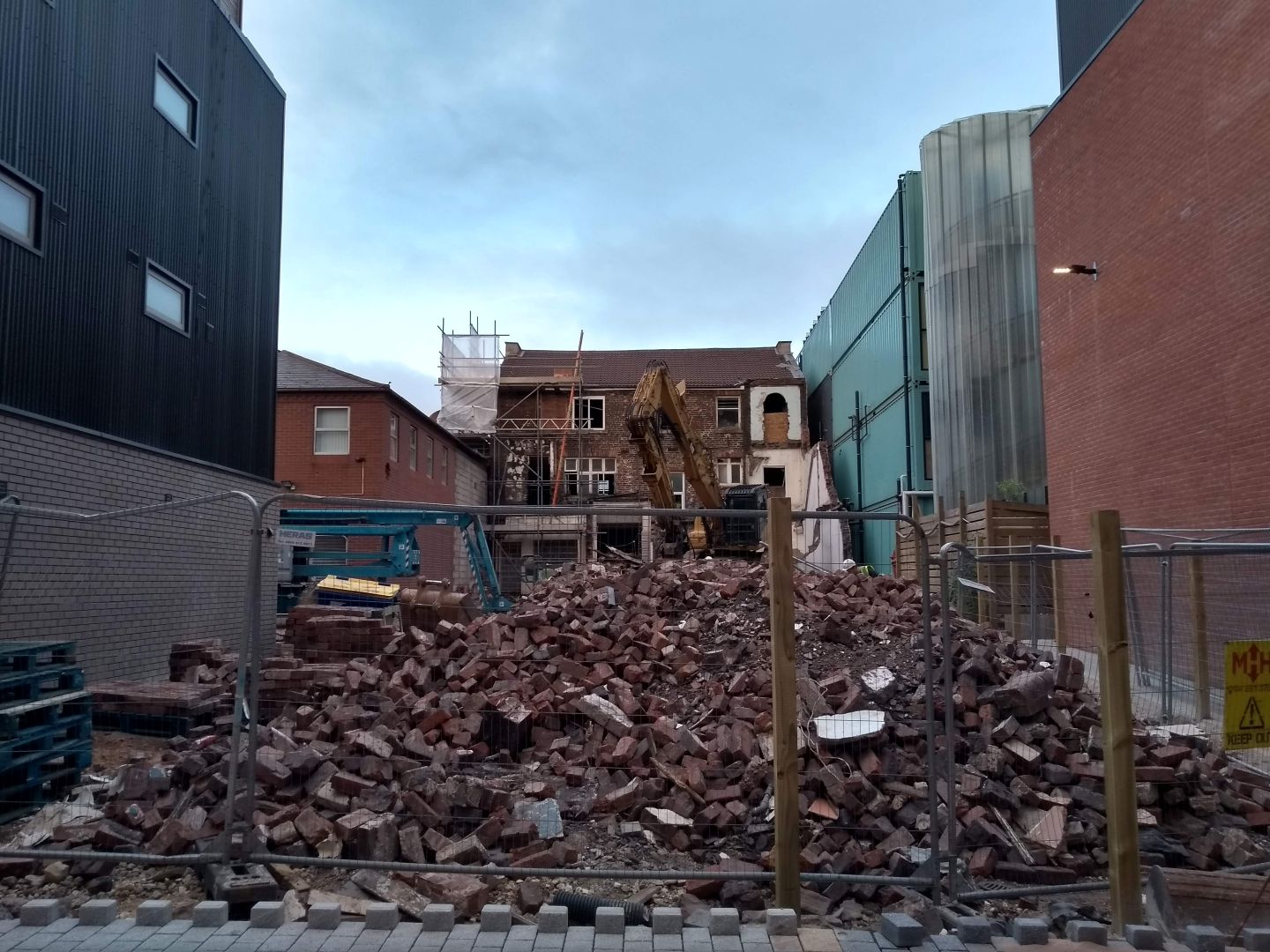 This discovery made the façade retention plan impossible. The building was dangerously unstable, and its basement once home to the renowned ‘Club 60’ directly adjoined the A61 inner ring road, posed a significant risk of collapse.